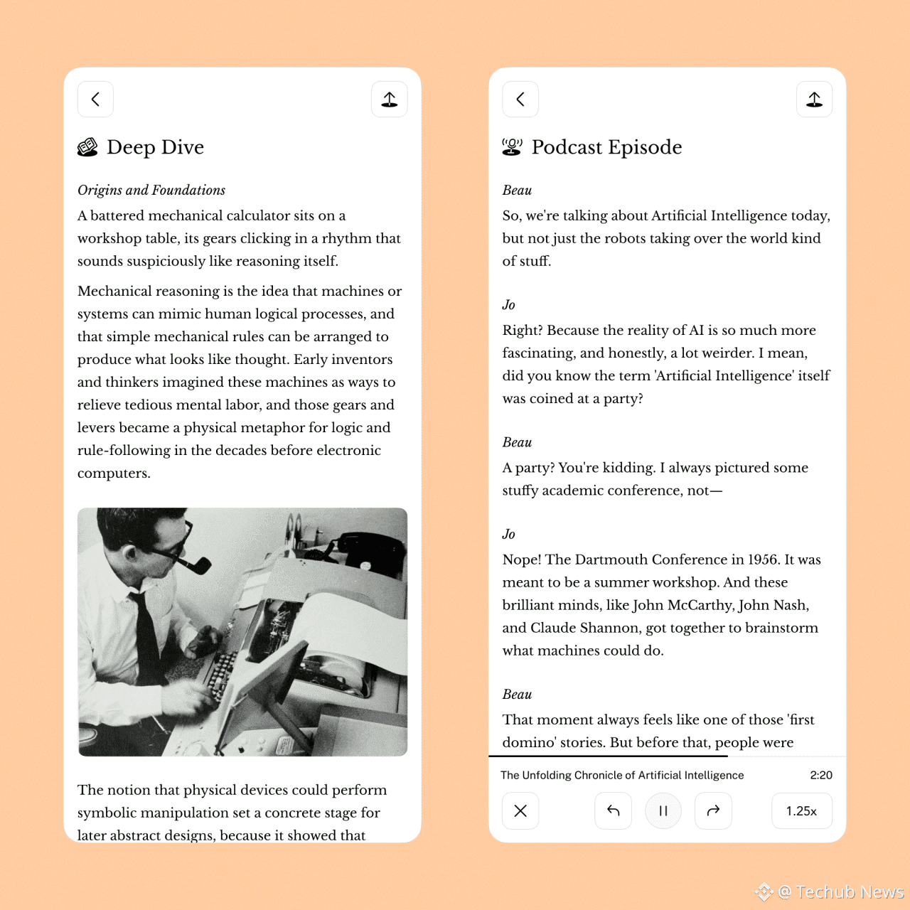 音频方面的改进也很有意思。过去用户需要在播客格式和讲座格式之间选择,现在 Oboe 会自动为你生成播客,并根据学习材料和用户的其他信号改变语气。这体现了一个重要的产品理念:减少用户的认知负担,让系统做出更多智能决策。