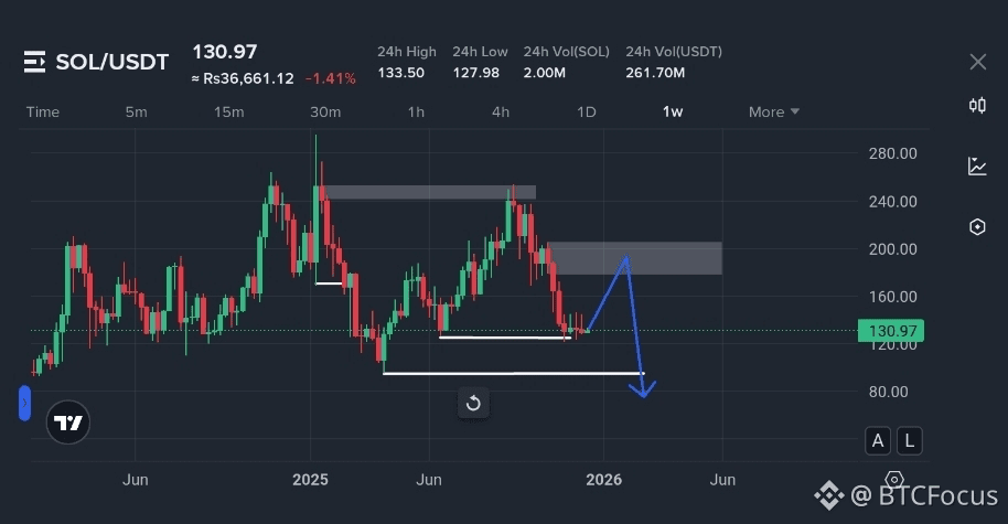 Both scenarios indicate that SOL remains in a bearish market structure. Until price reclaims key highs and invalidates the current structure, downside risk remains dominant.