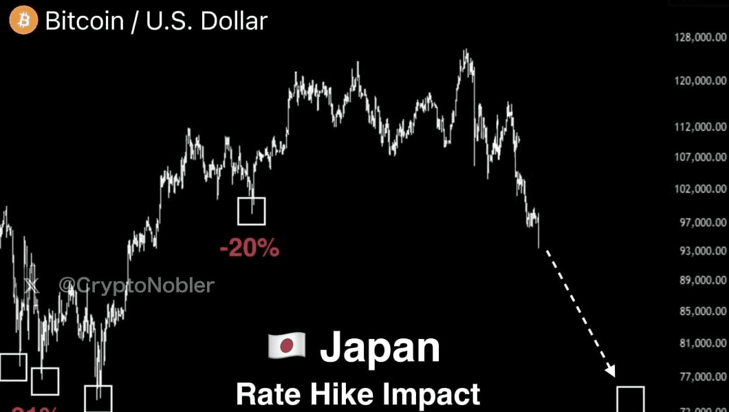 Historically, whenever Japan has raised interest rates, Bitcoin has faced a sharp decline — generally between 20–25%. This pattern is not a coincidence but is based on global liquidity movements.