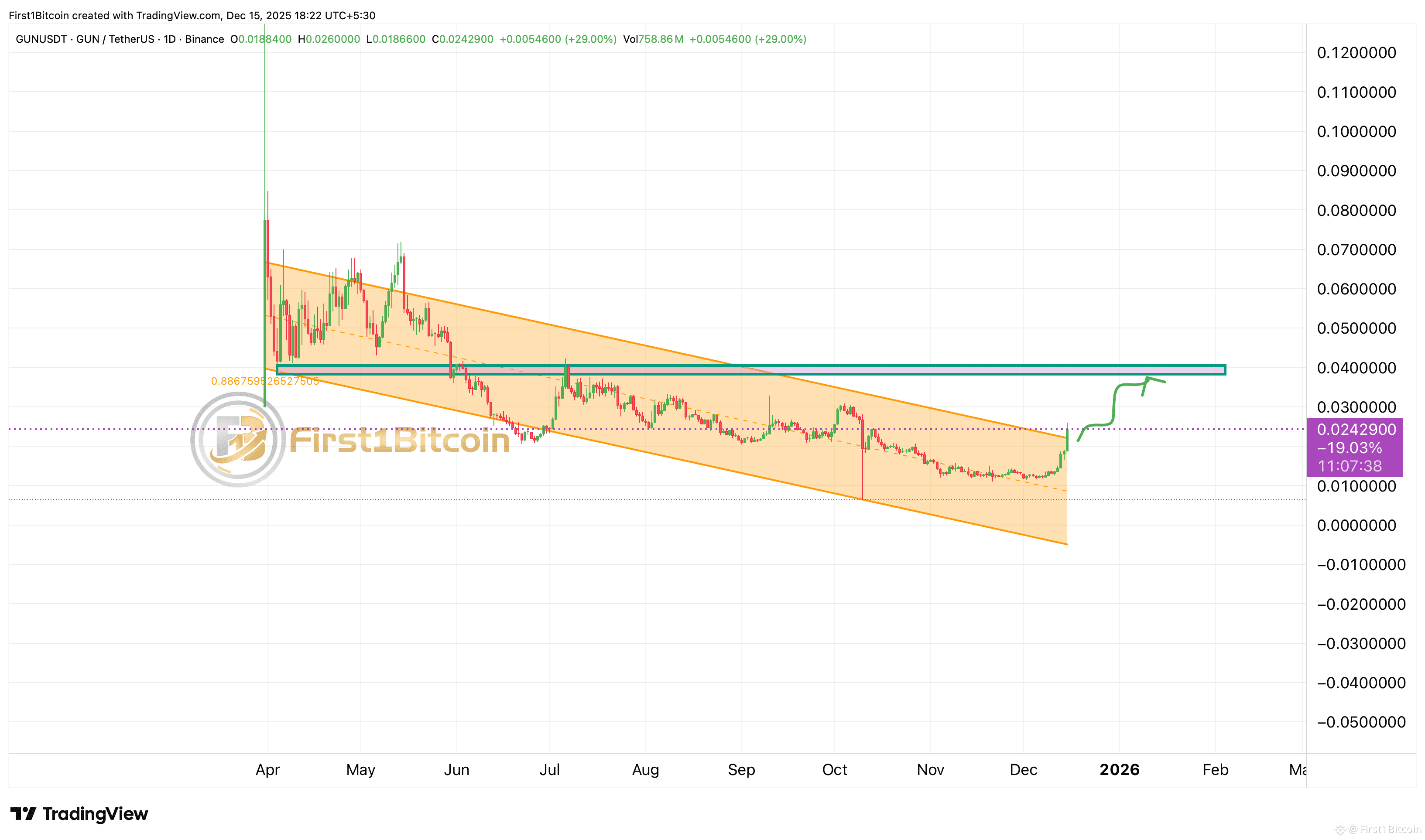 After months trapped in a falling channel, GUN has broken out and reclaimed key demand.