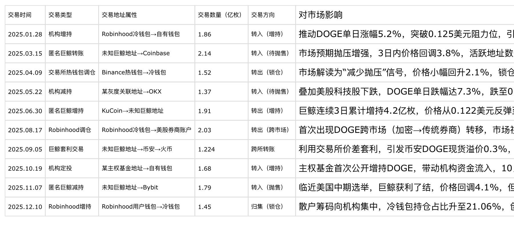 Despite achieving decentralized transactions through blockchain technology, Dogecoin's holding distribution exhibits significant characteristics of large holders clustering: