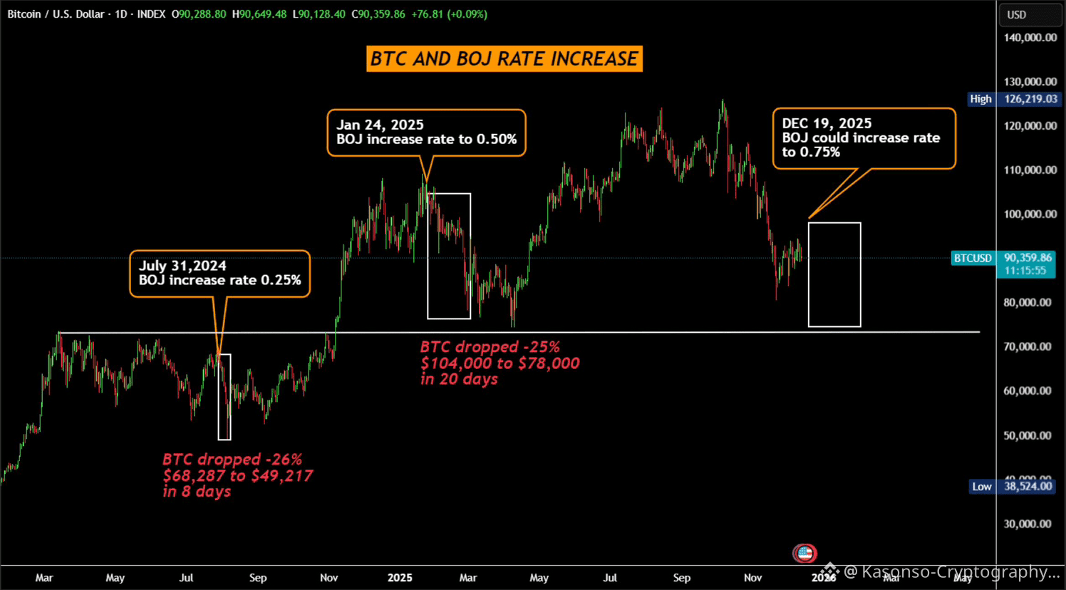 In January 2025 BOJ did a rate hike again, and Bitcoin dropped about 25% over the next few weeks.
