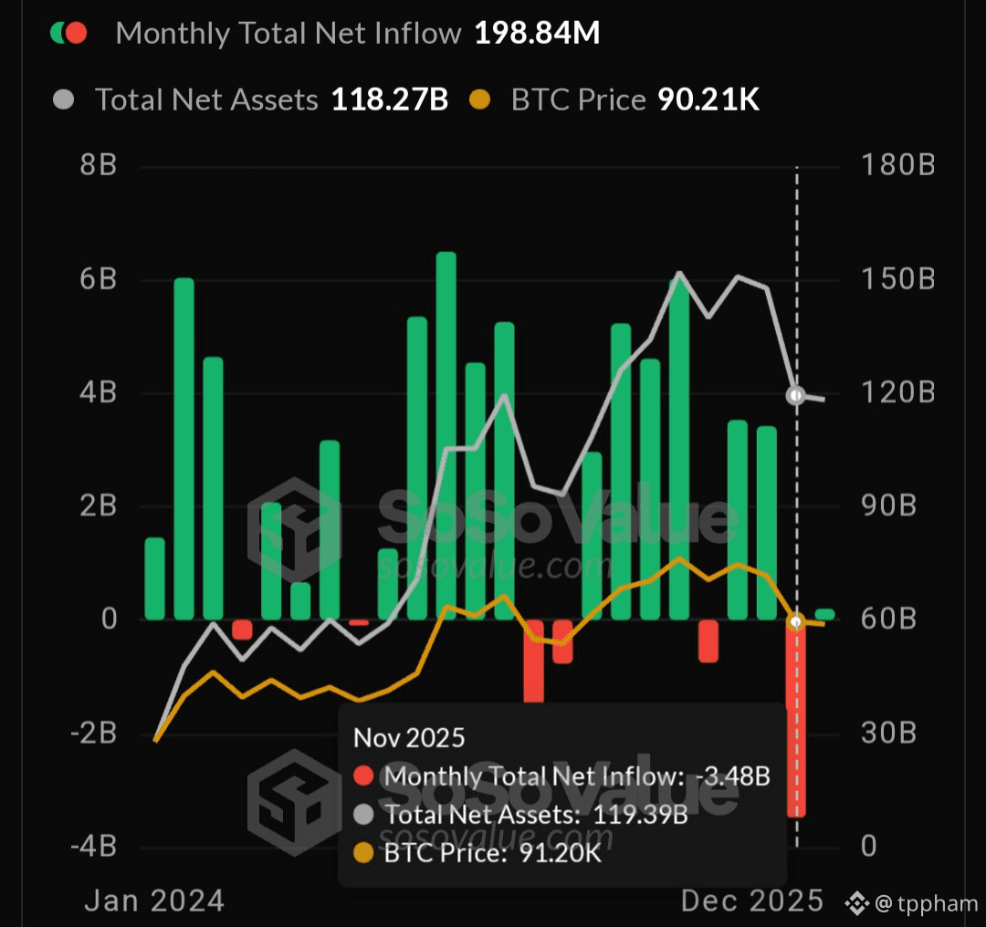 BTC & ETH: Dòng vốn Rút ra không liên tục -$4,6 tỷ USD (Rút ròng) Biến động vĩ mô, hành vi đầu tư dừng - bắt.