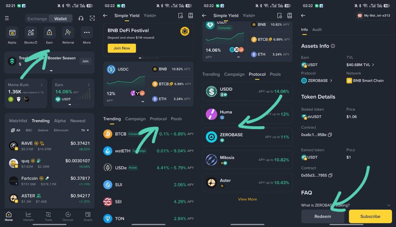Currently, the Binance wallet has urgently blocked the zerobase official website; users can redeem their staked USDT in the protocol through Wallet - Assets - Finance - Protocol - ZEROBASE.