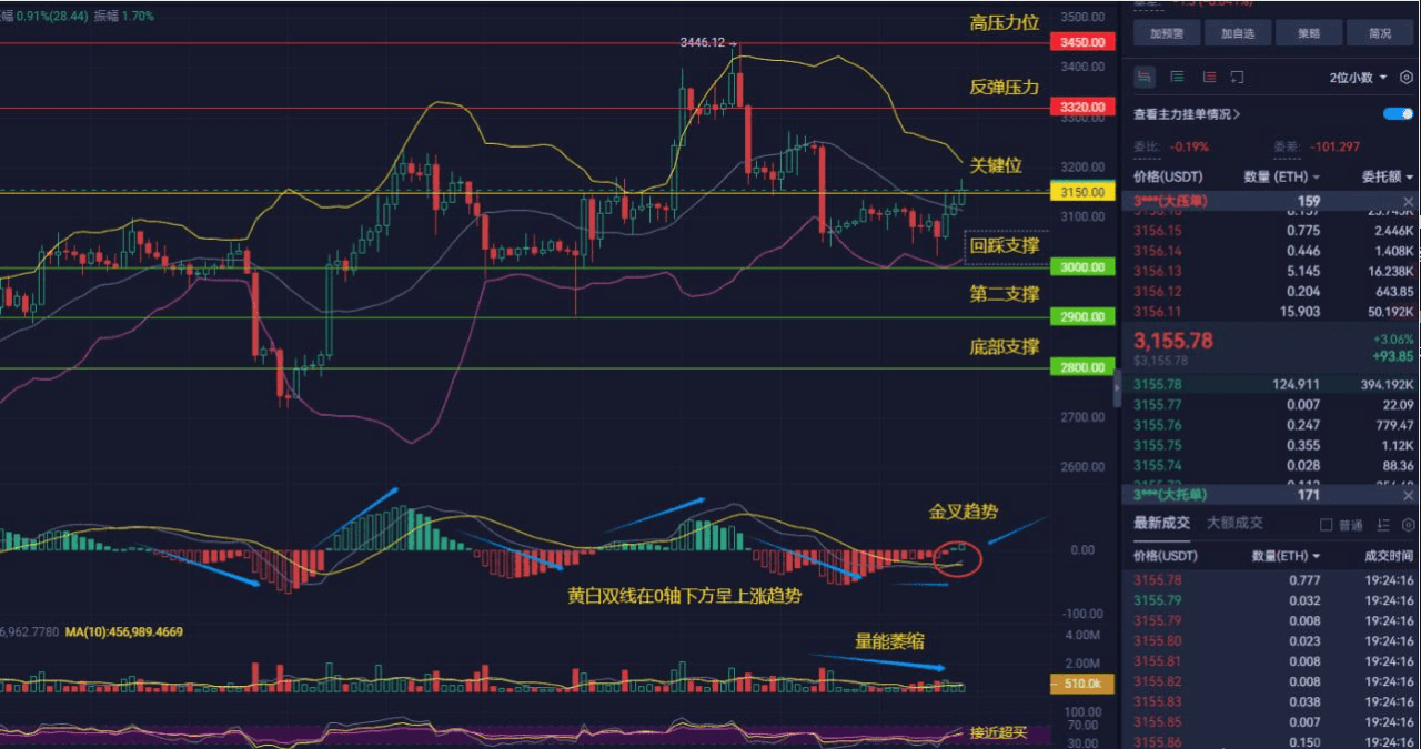 Brothers, quickly look at the market! $ETH Now stuck around 3158 USD, jumping around repeatedly; the technical signals are simply mystical~