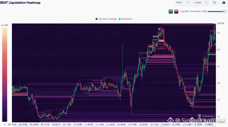 If price follows the liquidity in close proximity, then BEAT could drop toward or below the $2.40 level. Cumulative liquidation leverage below the current price was more than $1 million, making it a key price magnet.