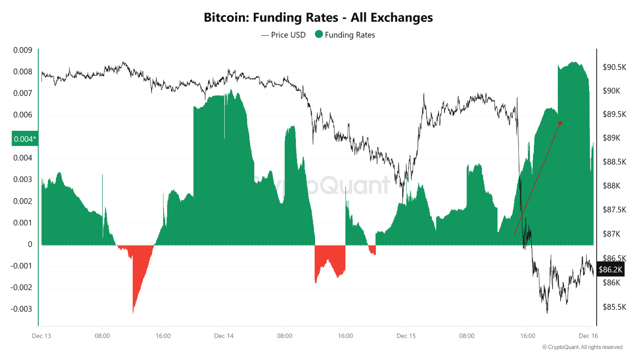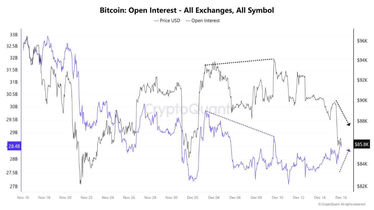 Before the previous FOMC meeting, Bitcoin recovered on expectations of rate cuts. However, during the same period, open interests declined, creating a clear divergence. This indicates that the rally was mainly driven by spot demand rather than derivatives positioning. This episode again emphasizes that a sustainable upward trend in Bitcoin usually requires not only greater spot demand but also a simultaneous expansion of open interests.