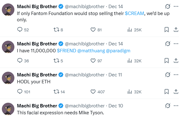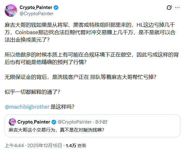 ● Even once-profitable experts can encounter setbacks when the market turns. According to PANews data, before the market crash on October 11, Brother Ma's overall position still maintained a profit level of $15 million.
