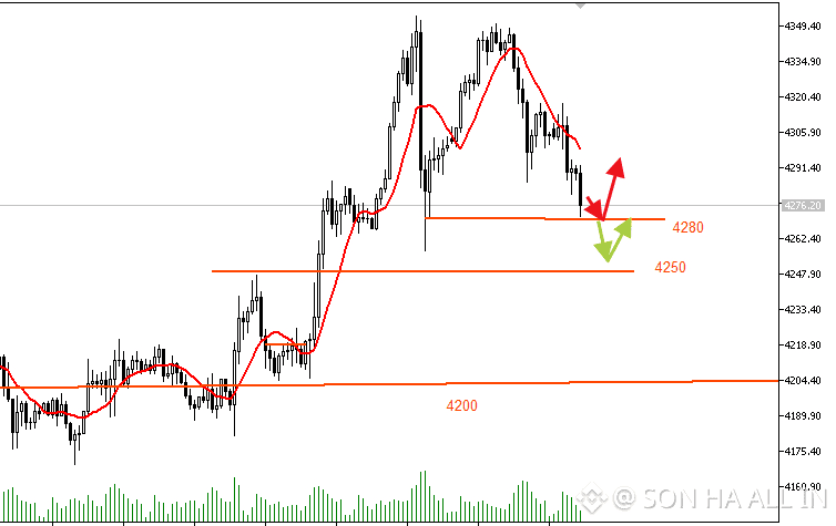 The recent acceleration in gold prices and the new highs reflect the bulls' significant initiative, supported by positive fundamentals. The $4280 area forms the primary support for any short-term pullback; this level represents both the lower edge of the recent consolidation range and psychological support.