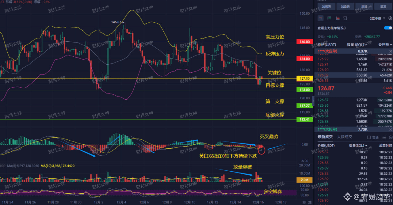 反弹即诱多,逢高做空是王道虽然有放量突破的痕迹,但量能根本跟不上,更像是主力在诱多出货。我认为SOL就算短暂反弹到130附近,也是给你做空的机会。真正的大支撑在下方,没到位之前别轻易抄底!