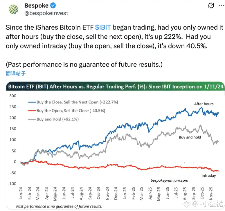 先看 ETF 机构:比特币现货 ETF 单日净流出约 3.5 亿美元(近 4000 枚 BTC),Fidelity 的 FBTC 和 Grayscale 的 GBTC/ETHE 是主要流出方;以太坊 ETF 也没好到哪去,累计净流出 6500 万美元(约 21000 枚 ETH)。还有个有意思的数据:自贝莱德 IBIT 上线以来,收盘后持有能赚 222%,但盘中持有反而亏 40.5%,可见美国交易时段的抛压有多猛。