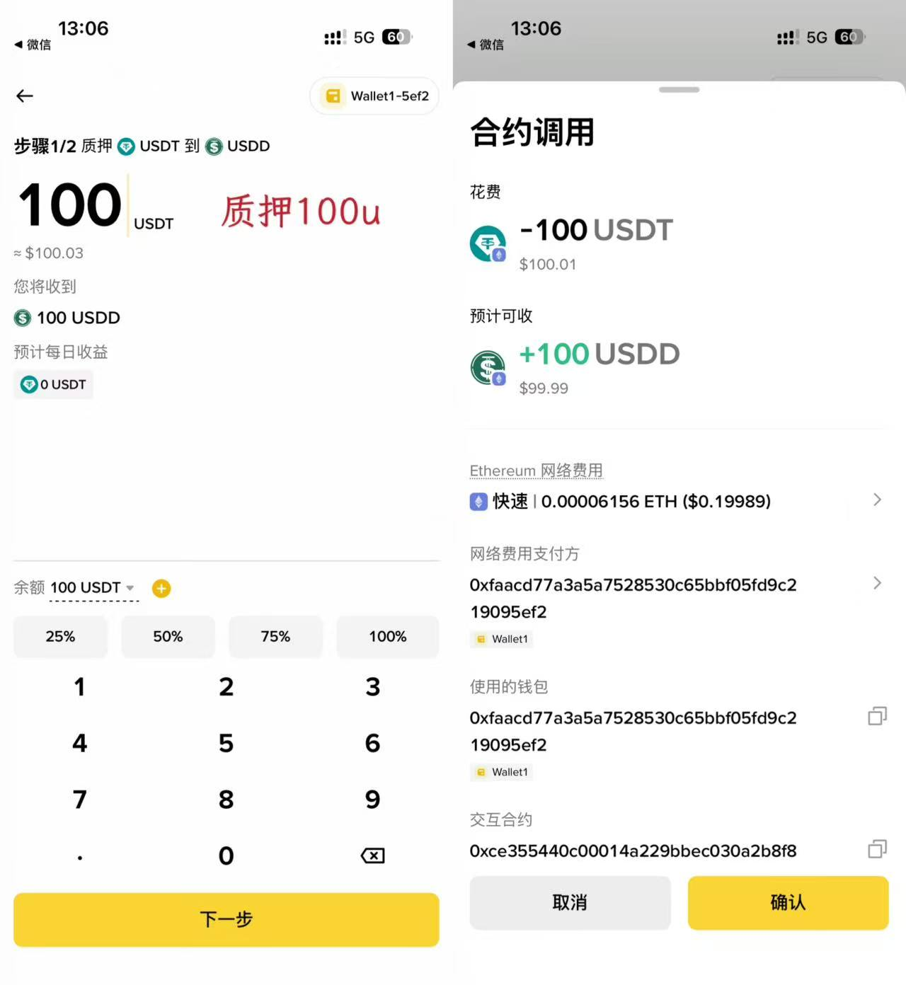 2. Stake USDT to exchange for USDD, it is recommended to stake above 100U, with a low participation threshold and more attractive returns;
