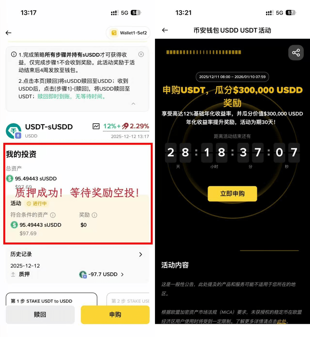 If nothing goes wrong, this is definitely the easiest and lowest threshold hair-cutting activity on Binance this year! Brother Meng personally tested it and completed it in 2 minutes, expecting single-user earnings of around 100U, with gas consumption of less than 0.5U, making it stress-free for newbies to operate with their eyes closed~ The key is that the redemption after staking is instantaneous, with almost zero risk; missing it would really be a loss!