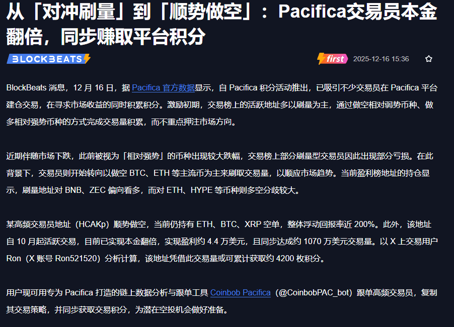 Facing any platform's points and incentive activities, first ask yourself: what are the core rules of the activity? Is it trading volume, position, or invitation? In the current market phase of unilateral rise, fall, or fluctuation, what is the optimal strategy to complete this rule? Like the case of Pacifica, the optimal solution in the early stage was volume brushing, and the optimal solution during the decline was to short and brush volume. What you need to do is not blindly follow a certain 'profit leaderboard' address, but understand what the optimal solution is for the current phase.