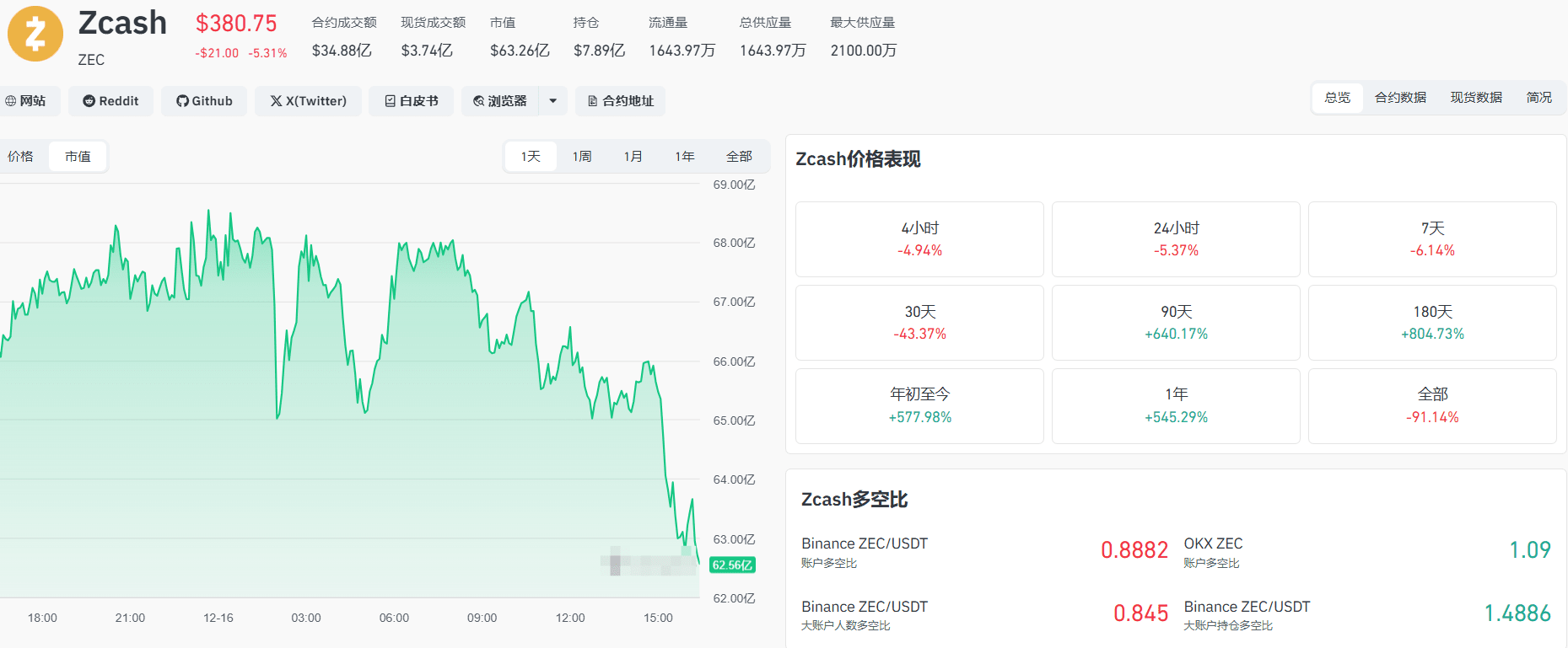Recently, large funds are obviously cautious. Although the contract trading volume is large, the position volume has not significantly increased, indicating that the main players are on the sidelines or leaving in batches. The overall sentiment in the cryptocurrency market is bearish, and privacy coins like ZEC are difficult to have a big reversal in the short term due to regulatory concerns. The long-short ratio shows that large clients are still increasing their short positions, while retail investors are instead taking over, which is not a good signal!