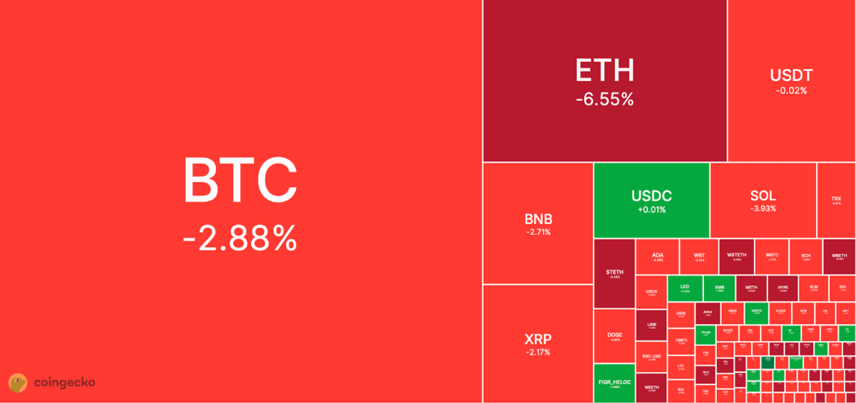 Smaller cap coins like Aster, Starknet and Pump.fun also have shown strong downward price action of close to 9%.