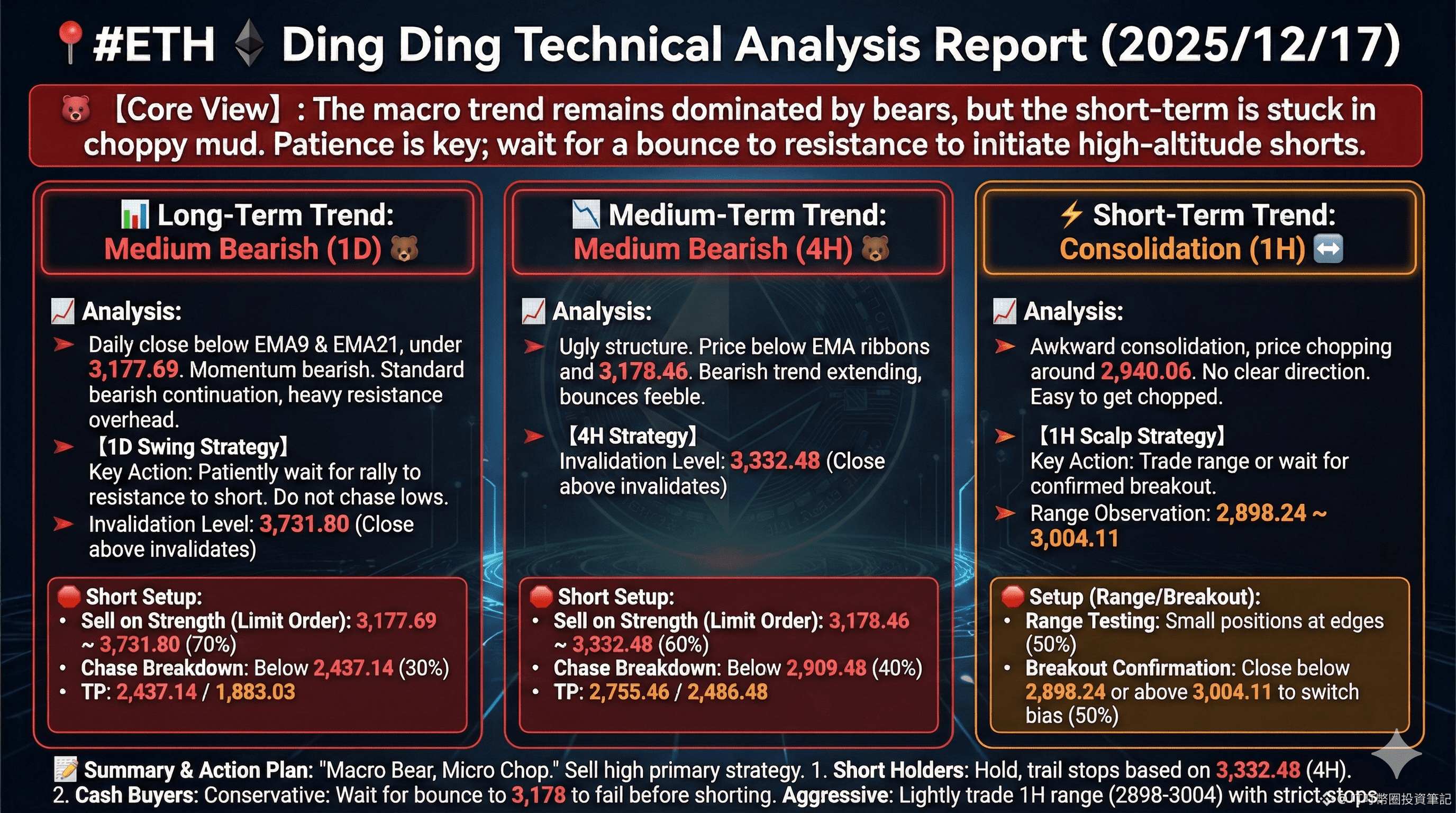 ETH is currently "Macro Bear, Micro Chop." The primary strategy should be selling high, with range trading as a secondary option.