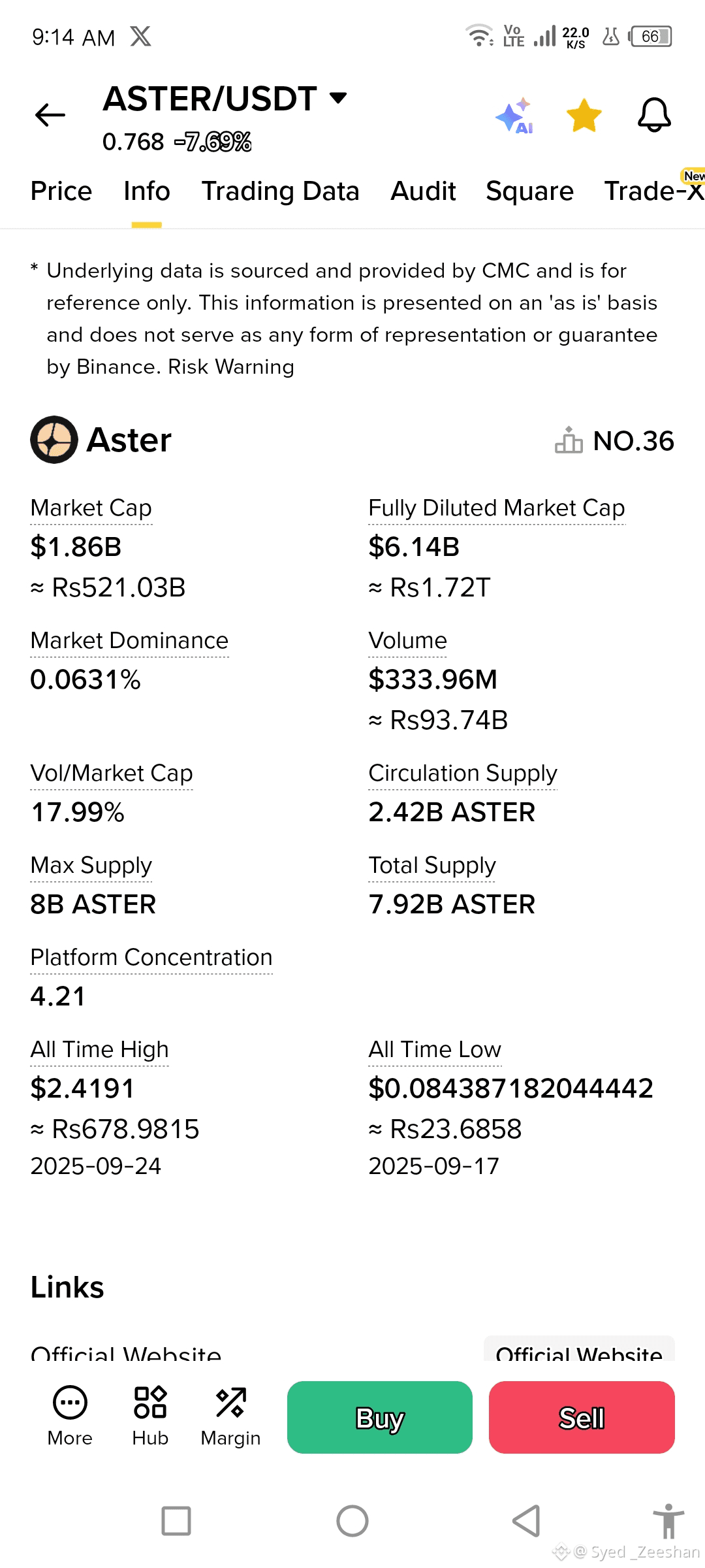 The token has dropped over 45% from its all-time high, showing that even rockets come back down to Earth. In the last month alone, ASTER has seen a -28% decline, reminding us that crypto markets can be brutal.