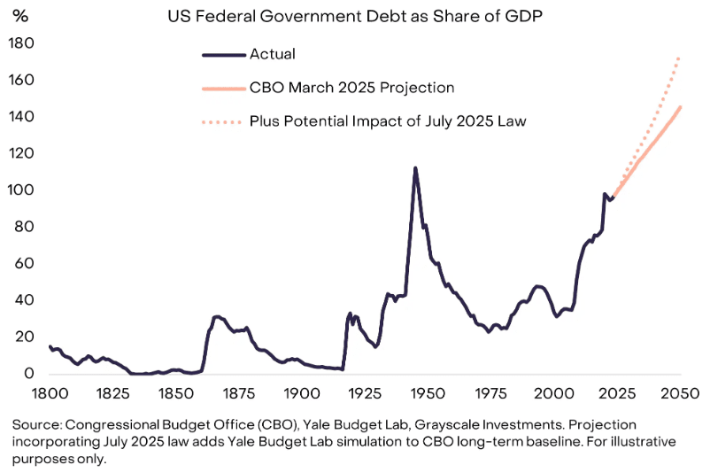 The rising public debt of major economies raises concerns about the long-term value of fiat currencies. Bitcoin and Ethereum, due to their transparent and programmable scarcity, are seen as 'value storage' assets in the digital age, attracting macro allocation funds.