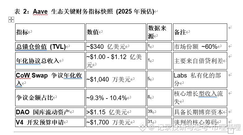 表 2:Aave 生态关键财务指标快照 (2025年预估)