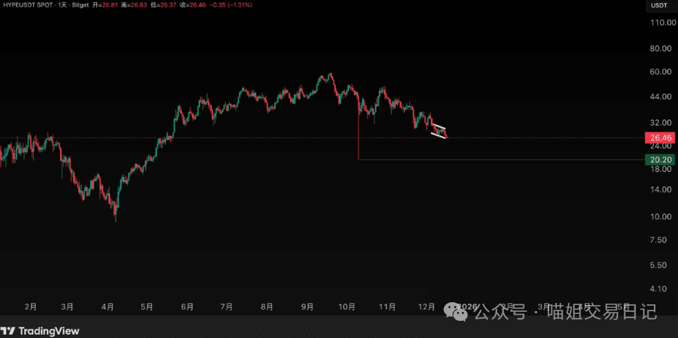 HYPE is currently in a state of continuous oscillation and slight decline, having dropped to 26 without showing signs of acceleration or explosive volume. Combined with the upcoming launch of Lighter and the complete release of its favorable factors, if it accelerates down to around 20 (the liquidation price from 10.11), it could be a position worth trying to enter.