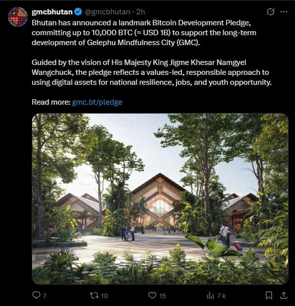 Bhutan has used its sovereign Bitcoin reserves to finance the Gelephu Mindfulness City.
