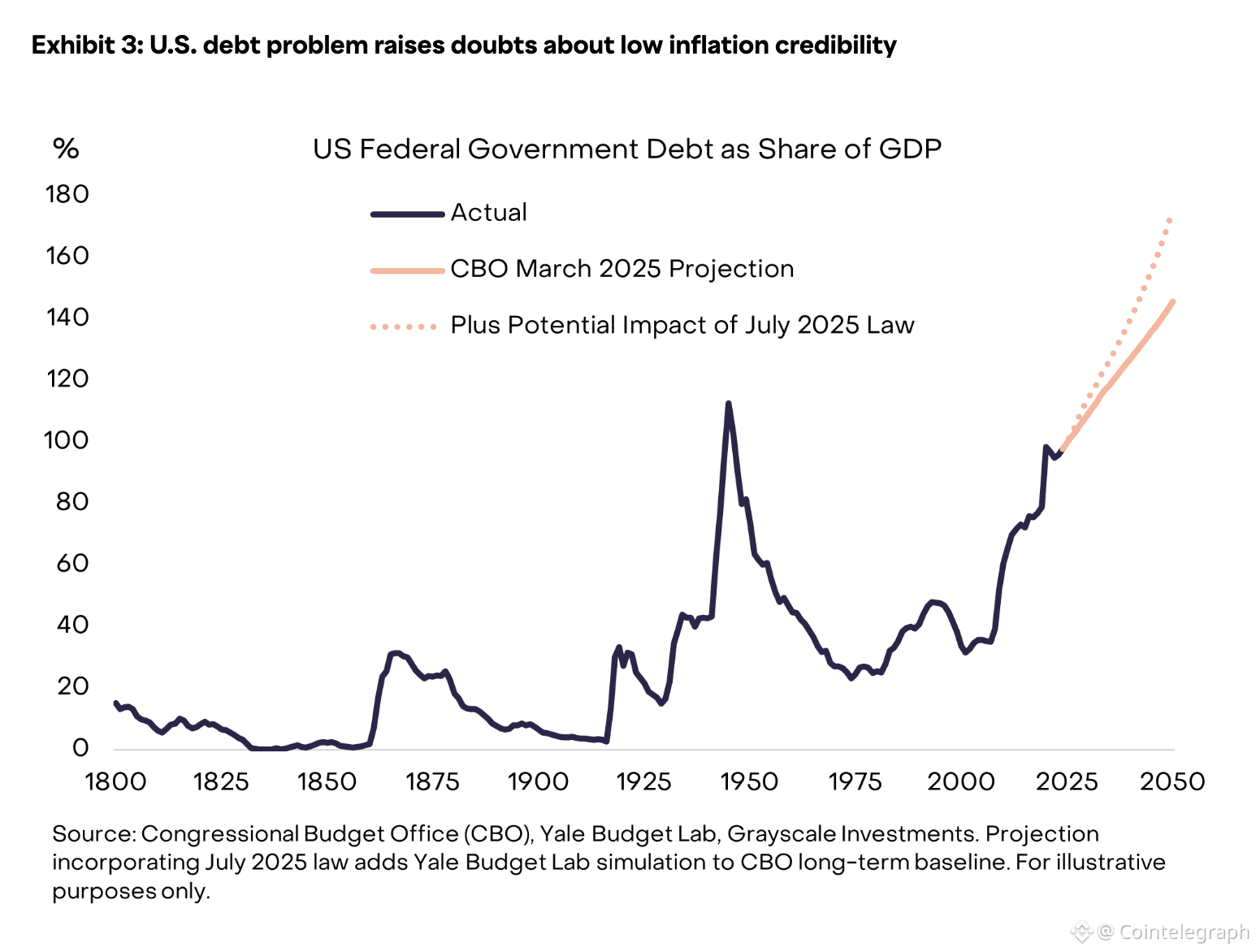 “Fiat currencies (and assets denominated in fiat currencies) face additional risks due to high and rising public sector debt and its potential implications for inflation over time,” Grayscale wrote in its latest report, adding: