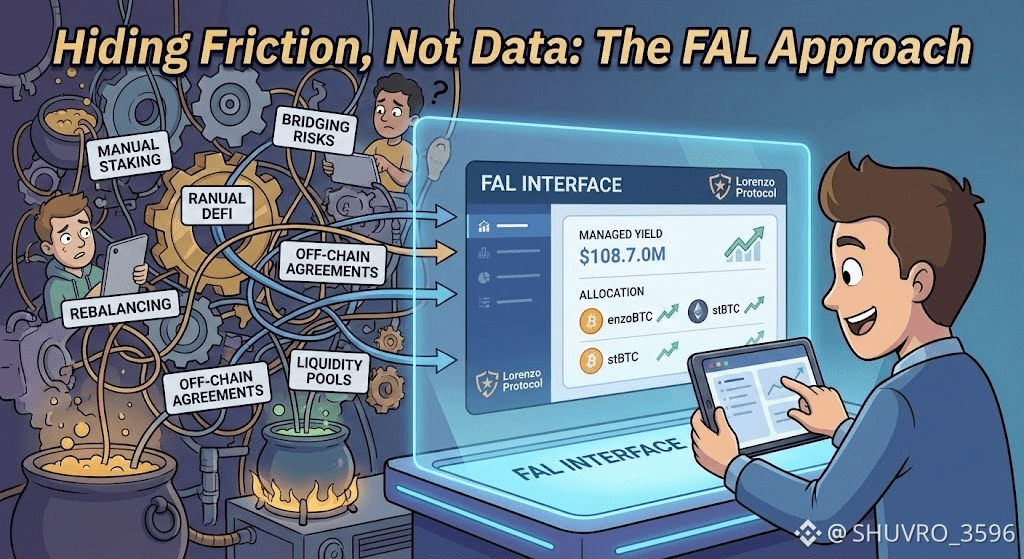 Lorenzo Protocol did not begin as an abstract idea about finance. It started with a practical problem. On-chain yield strategies were becoming harder to use, not easier. Users had to manage staking, bridging, rebalancing, and risk on their own. As strategies grew more complex, the tools stayed fragmented. Lorenzo’s answer to this problem became the Financial Abstraction Layer, often called FAL. It is not a surface feature. It shapes how the protocol works from the inside.
