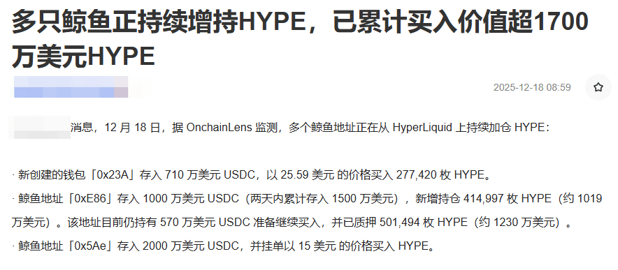 Conservative: Entering the market now is just a gamble on size. So learn from the whales and place orders at 15. Either wait for the day when HYPE can increase in volume, be strong, and steadily stand back above 26 dollars, then consider following up; it won't be too late to drink the soup.