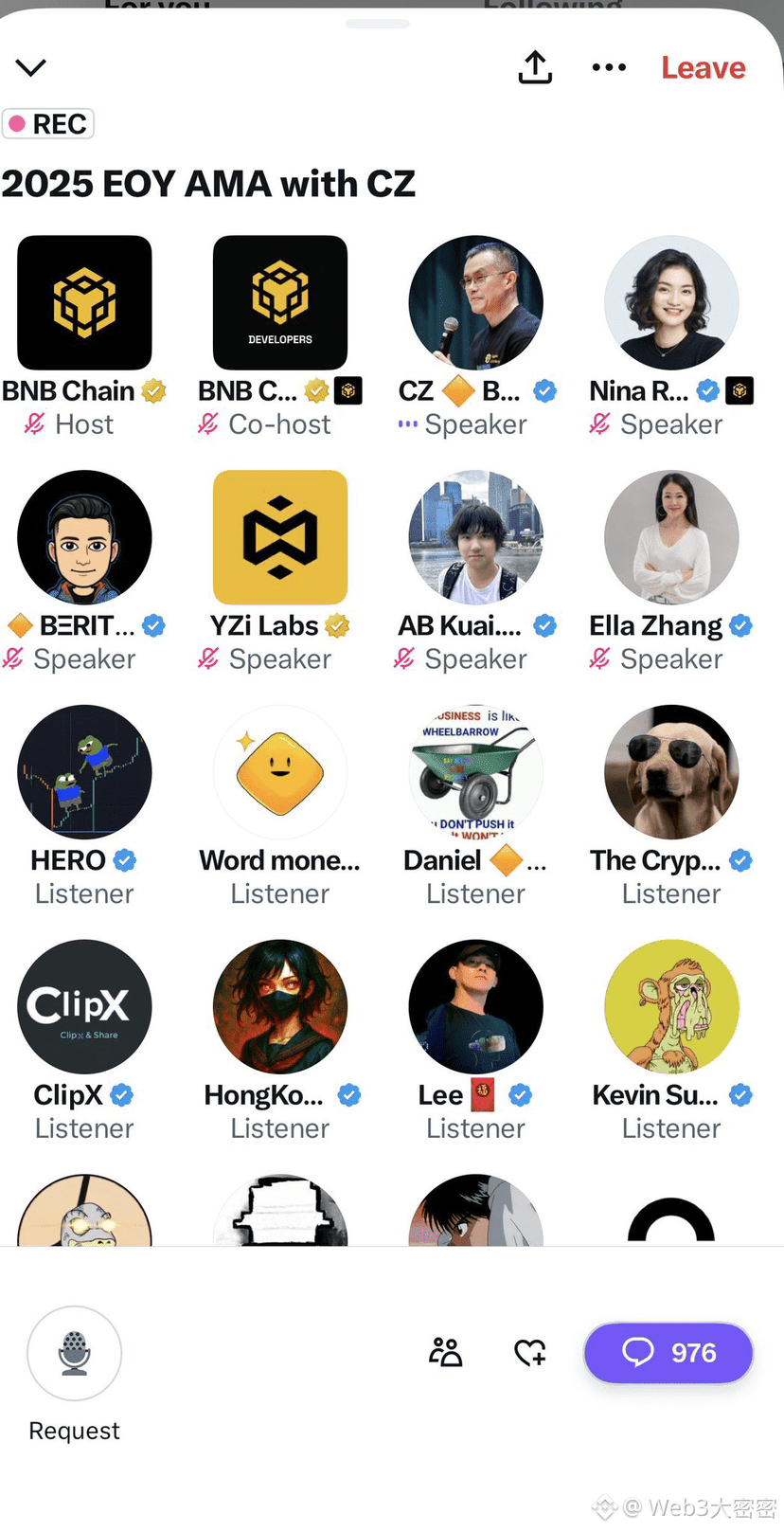 🧵 CZ 2025 年终 AMA 总结:昨晚在 X Space与 BNB Chain 共同举办的 AMA,持续约 1 小时。CZ 回顾个人与行业 2025 年,分享投资与趋势观点。Binance 用户超 3 亿,$BNB Chain 交易量增长 600%。以下按主题整理关键内容。