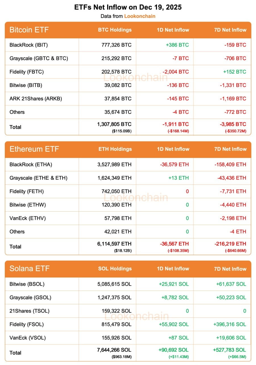 I find the ETF data from December 19 quite interesting, so I want to share a little perspective with everyone. Overall, the flow of funds is not leaving crypto, but it is clearly choosing a new position.