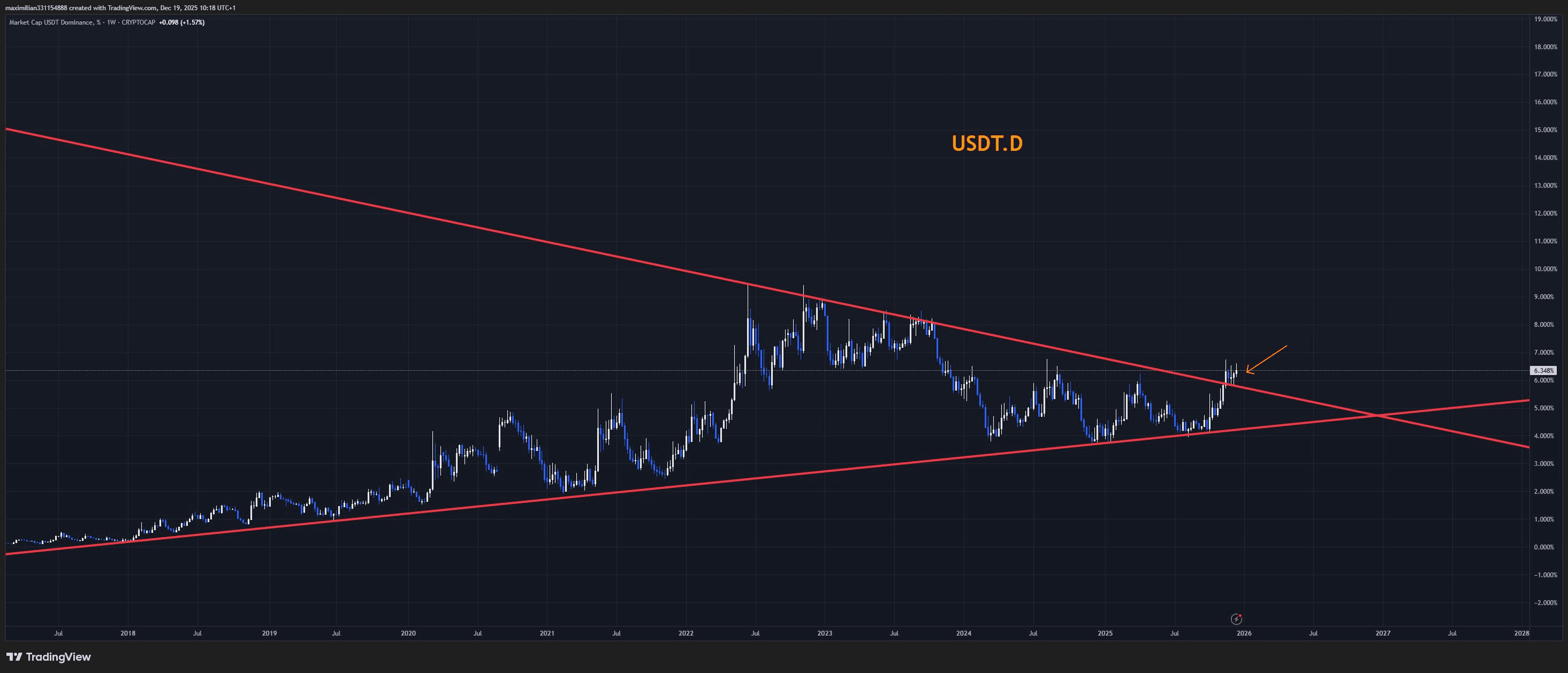 I see that this USDT.D chart is being interpreted by many as quite dangerous, so I want to share a little directly with you all.