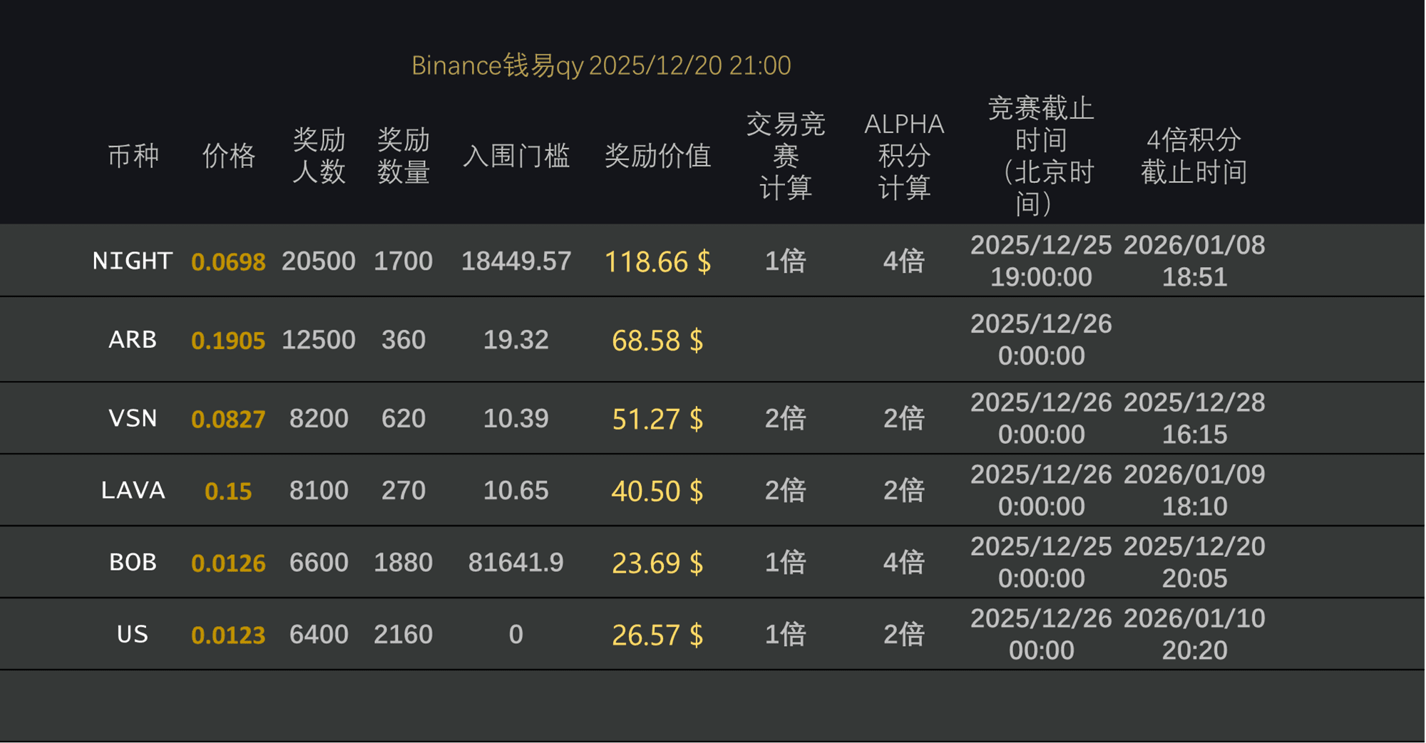 The trading volume of LAVA and VSN will be accumulated into the trading volume of ARB, and ARB itself does not have an ALPHA token.