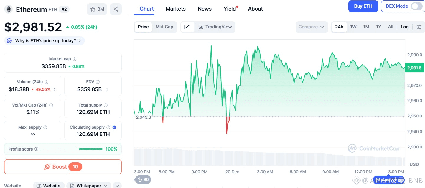 Ethereum Price Analysis: $ETH is currently priced at $2,981 reflecting a slight increase of 0.12% in the last 24 hours. While it surged a little today, it is still under pressure from the potential Japan sell-off US bonds news and rate hike.