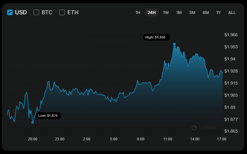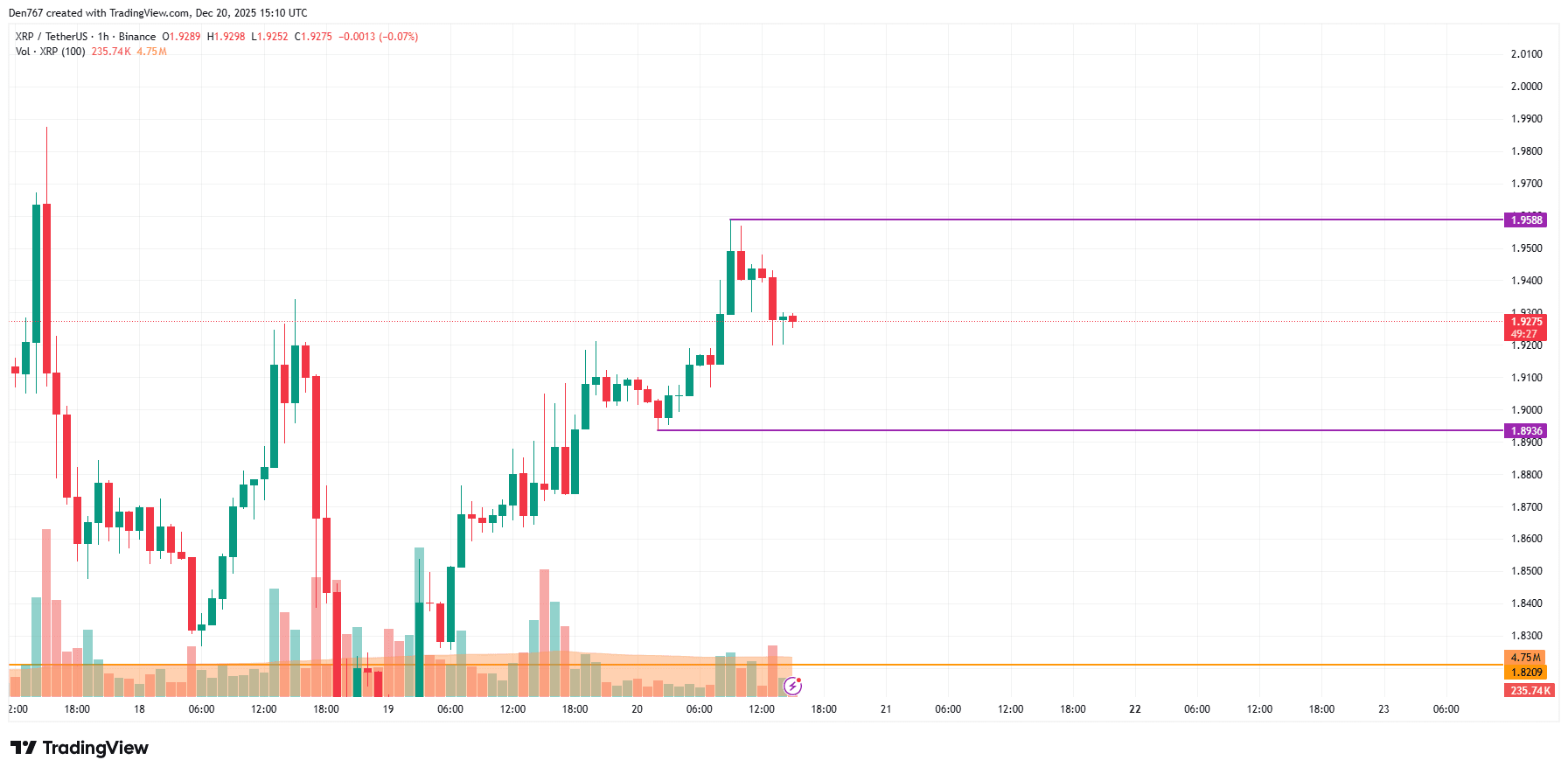 On the hourly chart, the rate of XRP might have set a local resistance of $1.9588. However, if the daily bar closes near that mark, traders may see a level breakout, followed by further growth to the $2 zone.