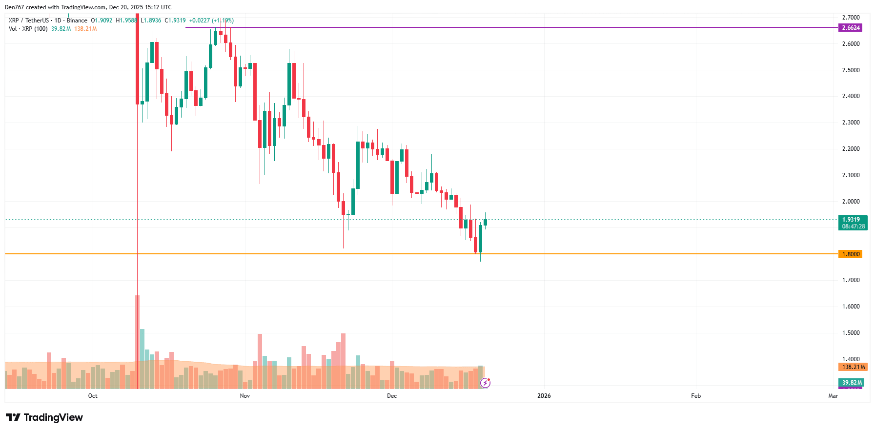 On the bigger time frame, the price of XRP is going up after a false breakout of the support of $1.80. But one should focus on the candle closure.