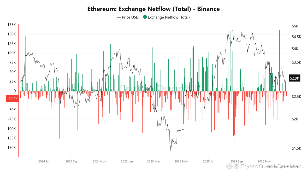 combining these two indicators points to a phase of strategic repositioning in the Ethereum market: profits exist but are not extreme, while selling pressure on Binance remains limited. This reduces the likelihood of sharp short-term corrections and leaves the medium-term trend more sensitive to structural and fundamental developments rather than short-term speculative momentum.
