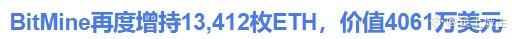 BitMine突然增持13,412枚ETH,价值4061万美元!这波操作像不像2021年灰度扫货比特币的翻版?