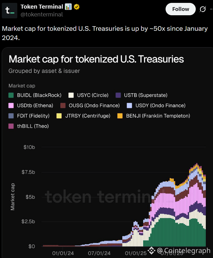 Tokenized US Treasurys have emerged as one of the fastest-growing segments of the real-world asset (RWA) market, with data pointing to 50x growth in less than two years amid rising institutional demand for on-chain yield.
