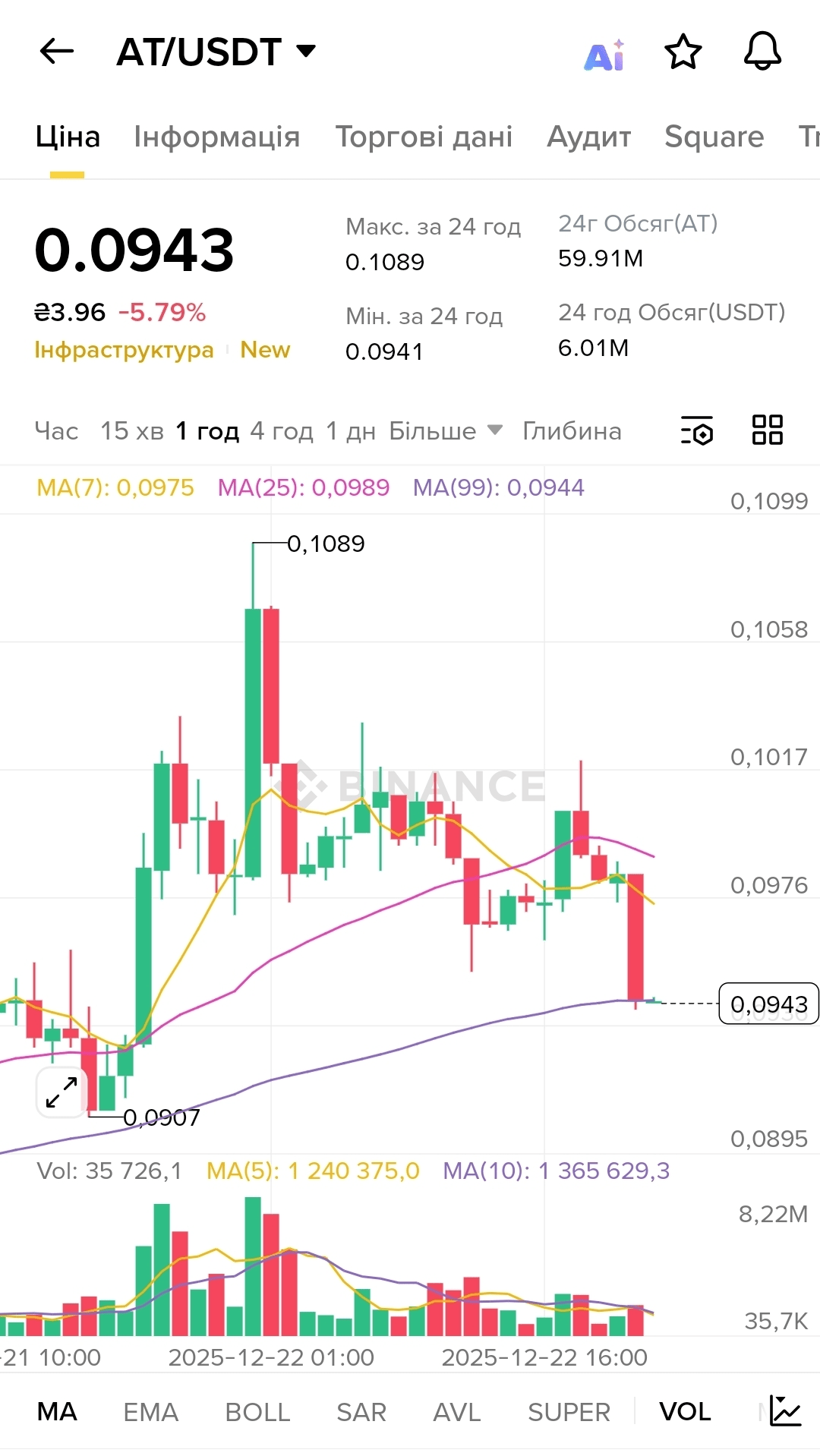 I look at the maximum for the day — 0.1089, minimum — 0.0941 — and think about another aspect. The community is also changing. Early followers of $AT had certain expectations, certain values. They believed in decentralization, in transparency, in a certain philosophy. But as the project grows, a mass of new people comes in who don't care about these things. They are only interested in profit.