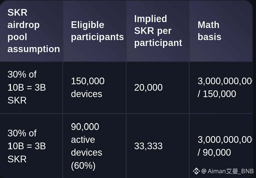 If eligibility were limited to “active” devices and 60% qualified, that rises to about 33,333 SKR per active device.