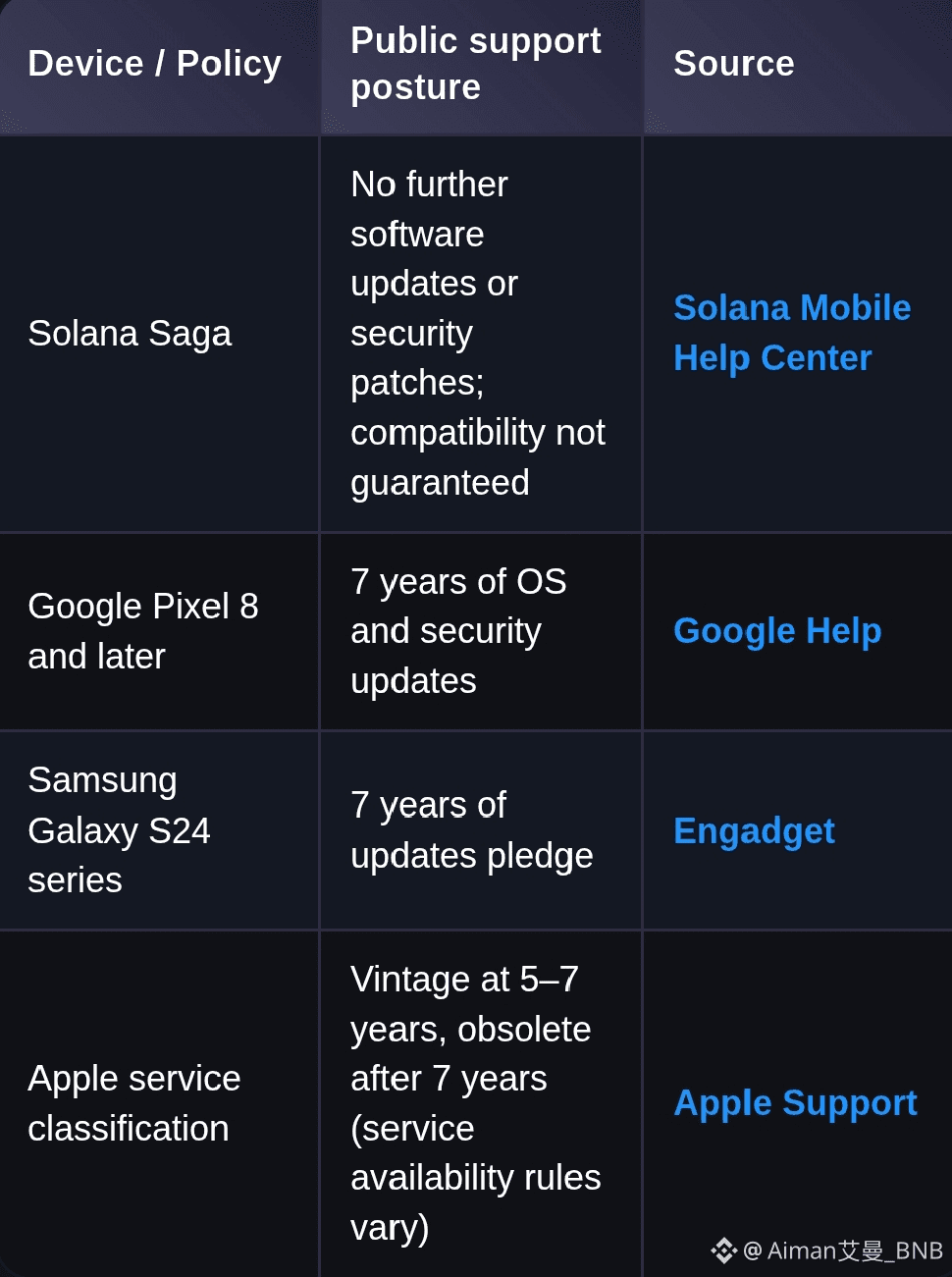 Solana Mobile’s help center makes this clear: Saga will no longer get security patches, and compatibility with new services isn’t guaranteed.