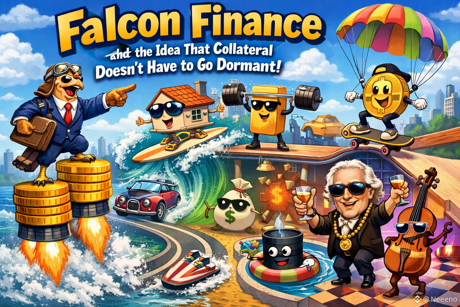 @Falcon Finance There’s a quiet frustration that comes up any time people talk honestly about collateral in crypto. You lock something up to borrow, or to mint a stable token, and then you watch that asset sit there like a parked car. It’s doing nothing except serving as a pledge. In a space that loves to talk about efficiency, that can feel like a strange bargain: you get liquidity, but you accept that a chunk of your net worth has to fall asleep.