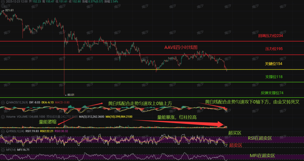 The initial support is at 154. If it breaks, 118 won't hold either, and ultimately the bottom of this phase of decline may be around 74.