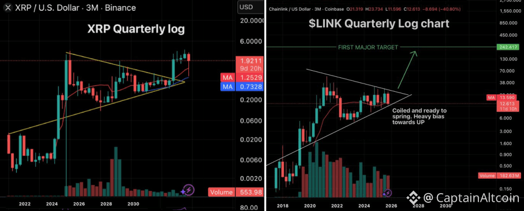 Chainlink is forming a similar pattern on the 3-month chart to the one XRP made before its bull run, which took the price from $0.73 to its peak of $3.60 (a 5x price increase). The same could happen with LINK now, which would take the price from the $12 zone (where it has been trading sideways for a while) to $60 in 2026.