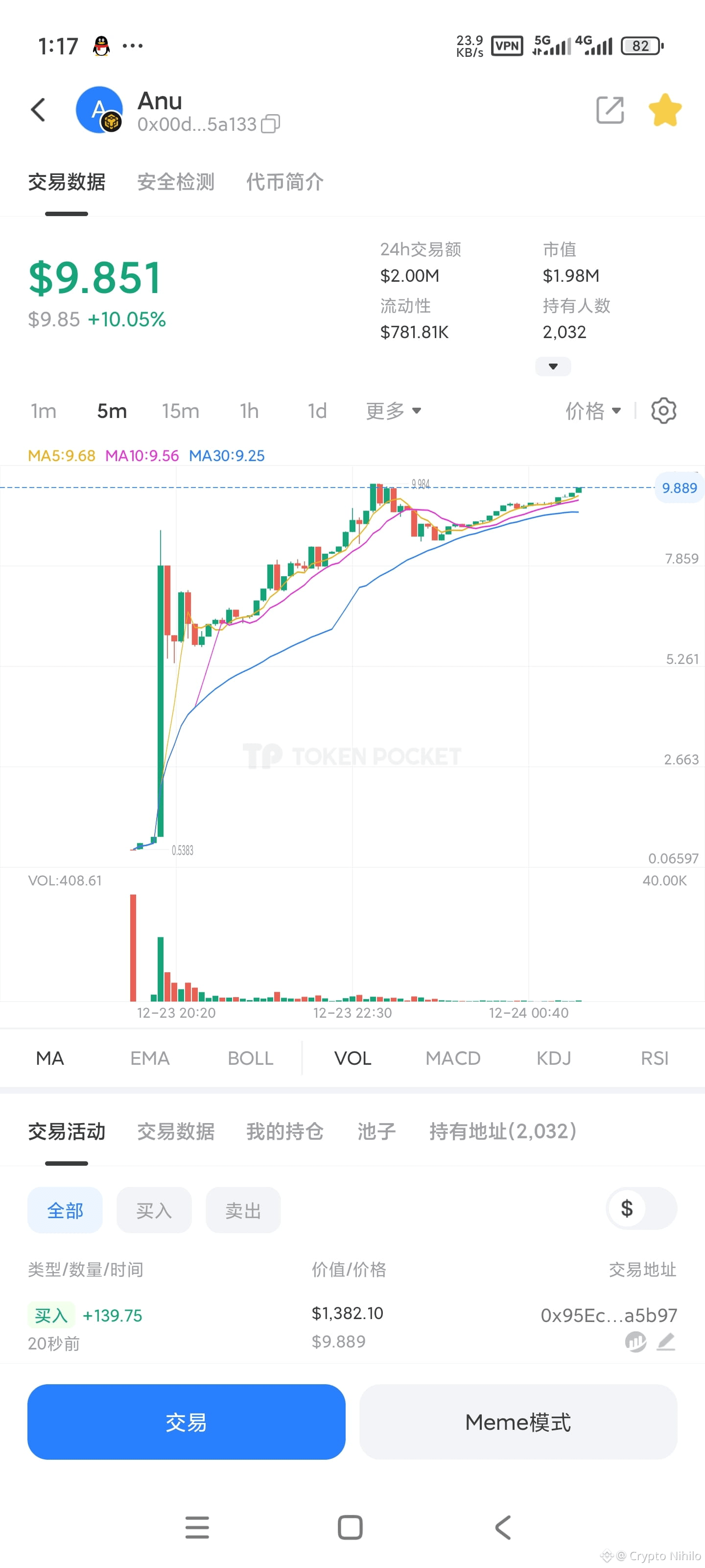 ANU今日进行上市交易,得到了全网的认可,并无一人浮亏,其最根本、最强大的力量,并非源于某个“超级团队”的运筹帷幄,而是始于一个偶然却必然的事实:无数个体基于对同一套数学逻辑和透明合约的信任,形成了无须中介、自然生长的共识。 其强大的智能代码通过链上运行处理供求平衡!未来必将创造传奇!