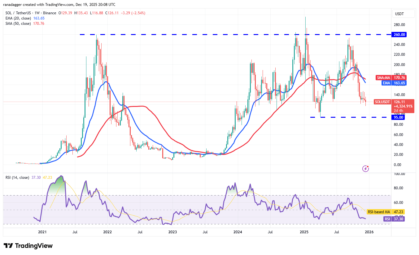 Buyers are expected to fiercely defend the $95 level, but the relief rally is likely to face selling at the moving averages. If the price turns down sharply from the moving averages, it signals a negative sentiment. The bears will then make one more attempt to sink the SOL/USDT pair below $95. If they succeed, the pair could descend to $80 and later to $50.