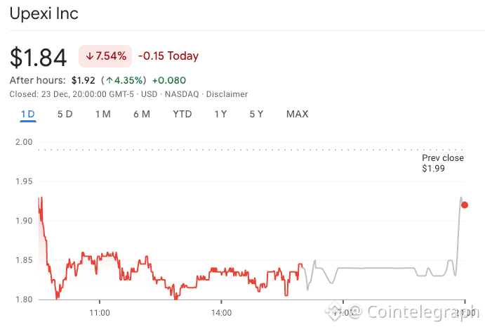 Shares in Upexi (UPXI) closed Tuesday down 7.54% to $1.84, but saw a small reprieve after the bell, gaining 4.34% to $1.92.