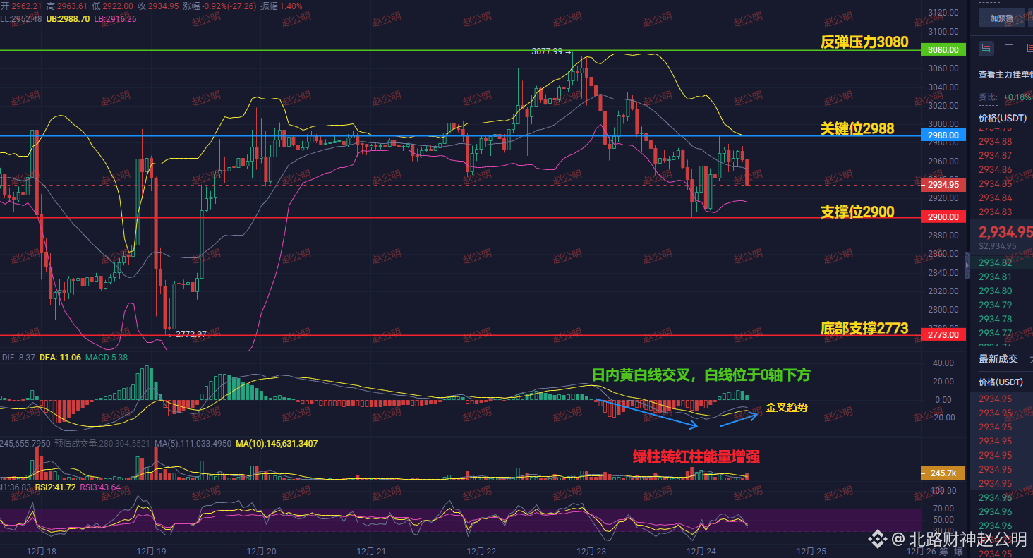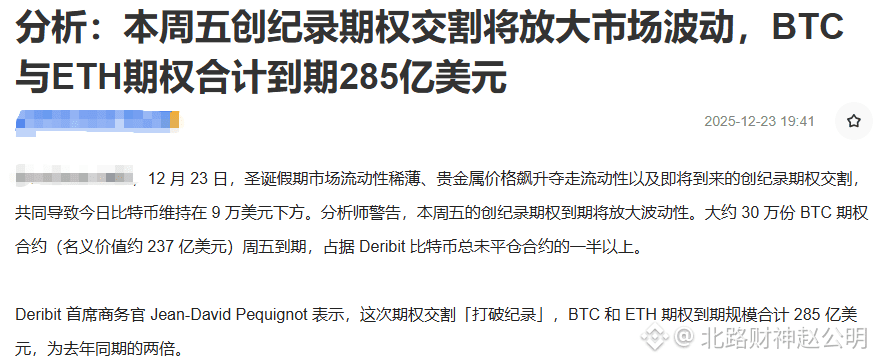 他们在等什么? 别忘了,周五有颗285亿美元的“期权核弹”等着炸。大量看涨期权堆在3000以上,庄家在这之前,有十足的动力把价格往下摁!巨鲸现在买,说不定就是给市场送“砸盘的子弹”。