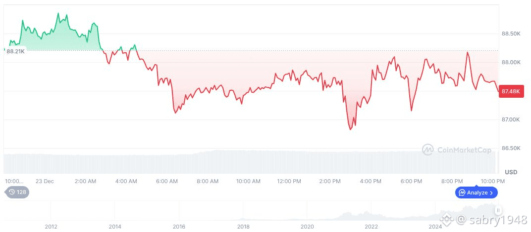 يتم تداول البيتكوين (BTC) حالياً بحوالي 87,372.63 دولار، مع قيمة سوقية تبلغ 1.74 تريليون دولار وهيمنة سوقية بنسبة 59.08%، وفقاً لـ CoinMarketCap. يبلغ حجم التداول في آخر 24 ساعة أكثر من 43.33 مليار دولار، مسجلاً تغييراً بنسبة 20.06%. تظهر الإحصائيات الأخيرة تحسناً طفيفاً بنسبة 0.06% في الأسبوع الماضي، رغم انخفاض كبير على فترات أطول، مما يشير إلى تقلبات محتملة في السوق.